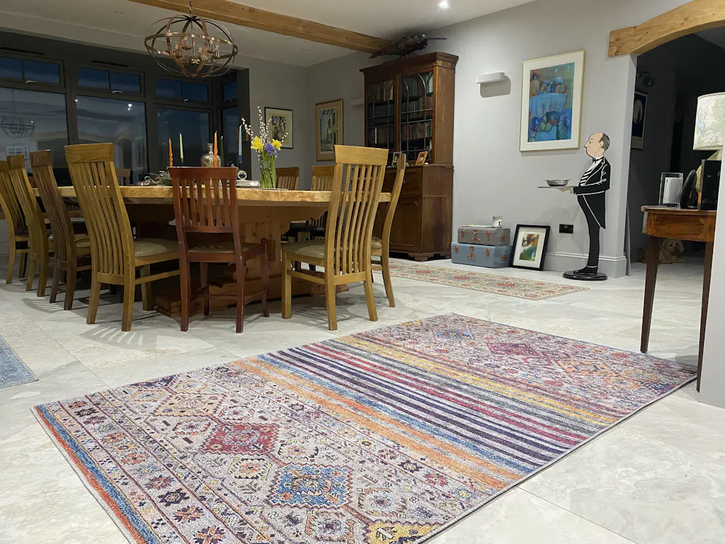 Our washable rug combines durability and elegance, crafted from high-quality cotton and polyester. Designed for busy households with children and pets, it resists dust and dirt, making it perfect for allergy-sensitive spaces. Its flat weave ensures it remains a practical yet stylish choice for high-traffic areas.