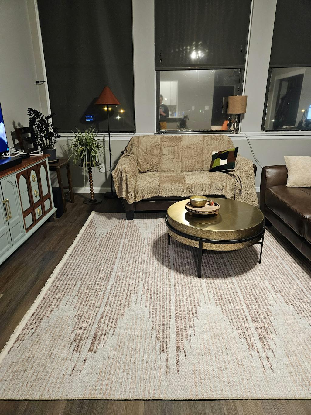 Cream and beige rugs are a timeless choice for creating a warm and inviting home. These tones blend beautifully with wooden furniture in shades of walnut or oak and pastel accessories, like blush pink cushions or sage green throws. For optimal harmony, pair with off-white walls and medium wood flooring, such as maple or honey oak. Add subtle gold or bronze decor pieces, such as mirrors or picture frames, to complete the look. Sheer curtains in cream enhance natural light, creating a serene and balanced ambiance.