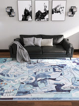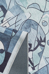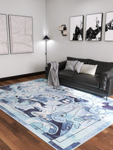 The pairing of blue and multicolor adds vibrancy and versatility to interiors, ideal for family rooms or creative spaces. Pair with walls in soft beige or pale grey to let the rug’s colors shine. Light wood floors, such as birch or maple, provide a clean and warm base. Neutral furniture in taupe or cream allows the rug to stand out, while blue and multicolor accessories, such as cushions or vases, create a cohesive design. Sheer curtains in pale blue complete the cheerful look.