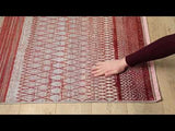 This high-quality rug exudes understated elegance with its warm, earthy tones and cool hues meticulously woven into horizontal bands and delicate diamond patterns. The texture varies across the rug, introducing a tactile dimension that enhances its luxurious feel. The detailed pattern combines classic charm with a modern edge, ensuring long-lasting quality and a cozy touch to any room's ambiance. This piece is a refined and versatile addition to any space, embodying a fusion of artistry and quality craftsmanship.