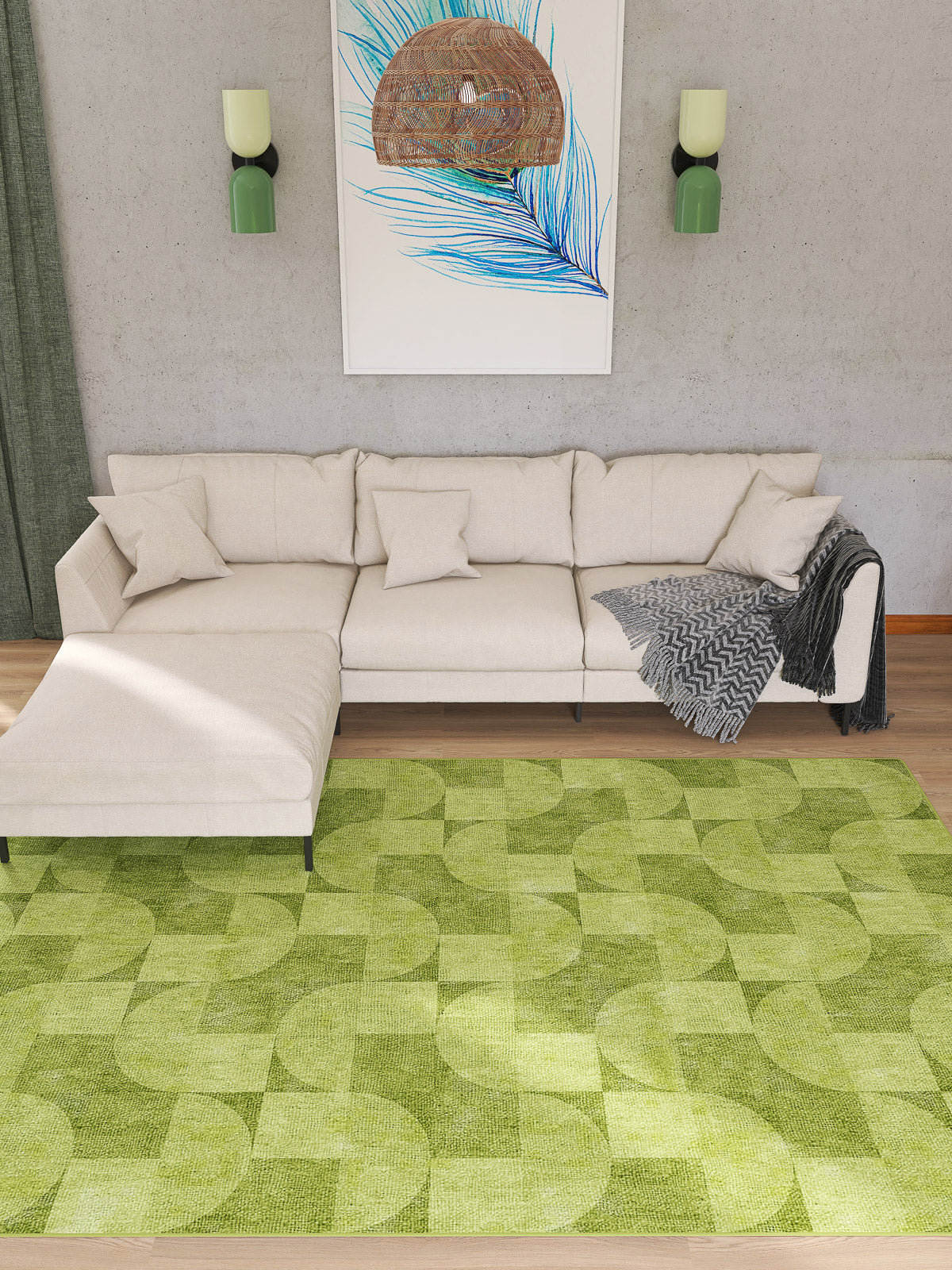 The soft green hues introduce a refreshing and calming effect, ideal for modern interiors. This shade pairs seamlessly with neutral tones, such as off-white or light grey, to create a sophisticated balance. For a bolder approach, darker wood accents or brass details can enhance the rug’s contemporary feel.