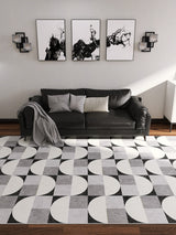 The structured geometric design aligns perfectly with modern interiors, providing a clean and contemporary look. Whether placed in a minimalist setting or used to complement bold statement pieces, this rug enhances the overall visual appeal without overpowering the decor. Ideal for living rooms, offices, or open-concept spaces.