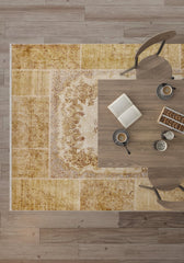 Yellow-gold rugs bring a cheerful and luxurious vibe to any room. Perfect for living rooms or entryways, they pair beautifully with navy blue or charcoal grey walls for dramatic contrast. Light wood flooring, such as ash or birch, enhances the vibrancy, while taupe or ivory furniture softens the overall design. Incorporate gold decorative pieces, such as mirrors or trays, for a seamless, upscale look. Sheer beige or pale gold curtains tie the design together, making the space feel bright and welcoming.