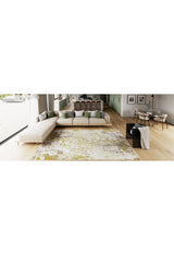 Yellow-gold rugs bring a cheerful and luxurious vibe to any room. Perfect for living rooms or entryways, they pair beautifully with navy blue or charcoal grey walls for dramatic contrast. Light wood flooring, such as ash or birch, enhances the vibrancy, while taupe or ivory furniture softens the overall design. Incorporate gold decorative pieces, such as mirrors or trays, for a seamless, upscale look. Sheer beige or pale gold curtains tie the design together, making the space feel bright and welcoming.